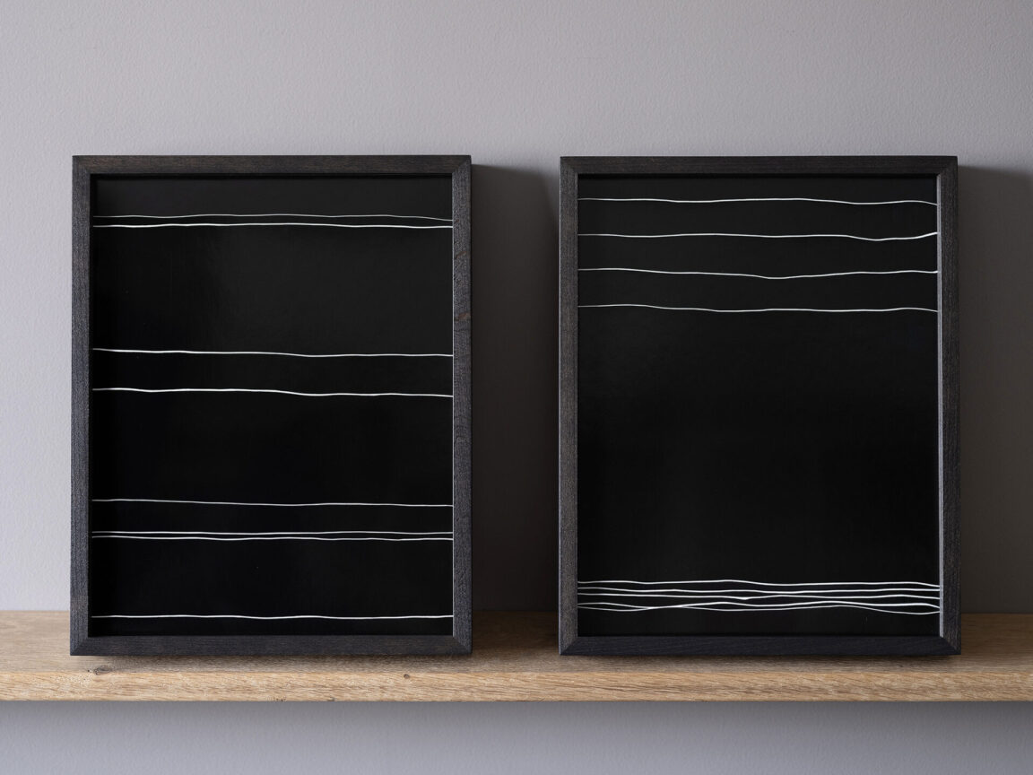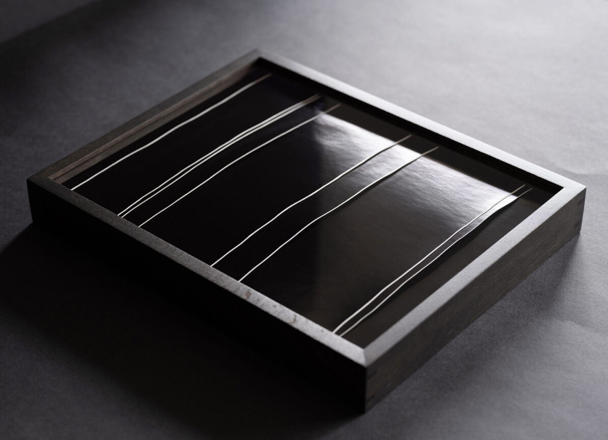 Weiße matte Linien auf tief glänzendem Schwarz.